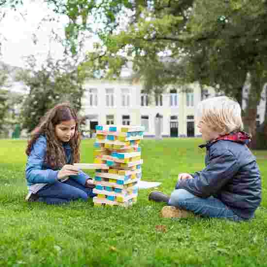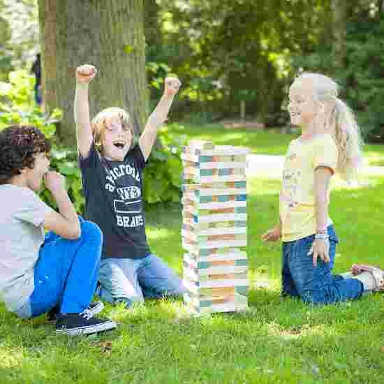 A great game of skill for outdoor use where you must build the tower as high as possible. Each player must remove a block from the tower and place it at the top. The player who removes a block which results in the tower toppling over is the loser. Building blocks made from birchwood, block size: 21x5x3.3 cm. Max. tower height approx. 100 cm. Suitable from 5 years +.