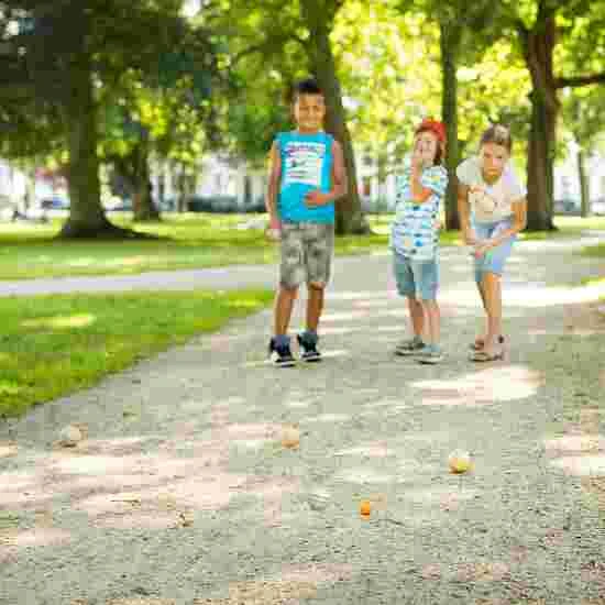 The boules set includes 6 boules and a jack made of birch in a practical compact zip bag. The aim of the game is to throw your boules so they land as close as possible to the jack. The wooden boules are differentiated by different coloured stripes, which makes it easy to quickly allot points.