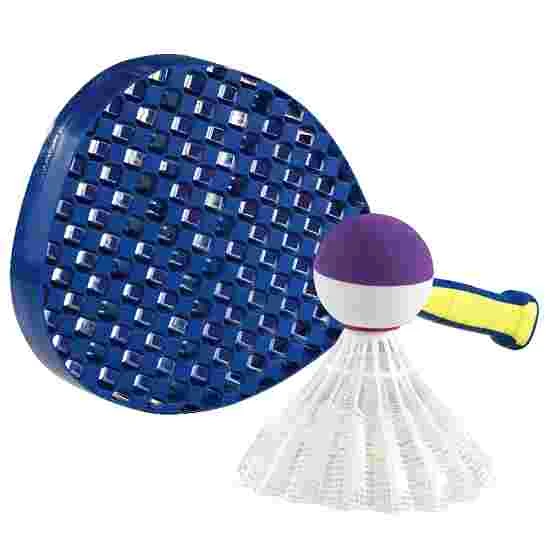 Playing set consisting of 2 very strong plastic bats, length 41.5 cm, width 22.5 cm, 280 g and a shuttle ball. This over-sized shuttlecock has excellent flight characteristics, even in the wind. Suitable for many racquet sports.
