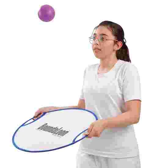 The set of six boundaloons are supplied in various colours. You can play with the ball trampoline alone or in pairs. The Boundaloons consist of a metal ring with an elastic net drawn across it. The use of both hands allows for a larger catching area and a more stable throw. The small ball trampolines promote hand-eye coordination – the game is also particularly quiet.