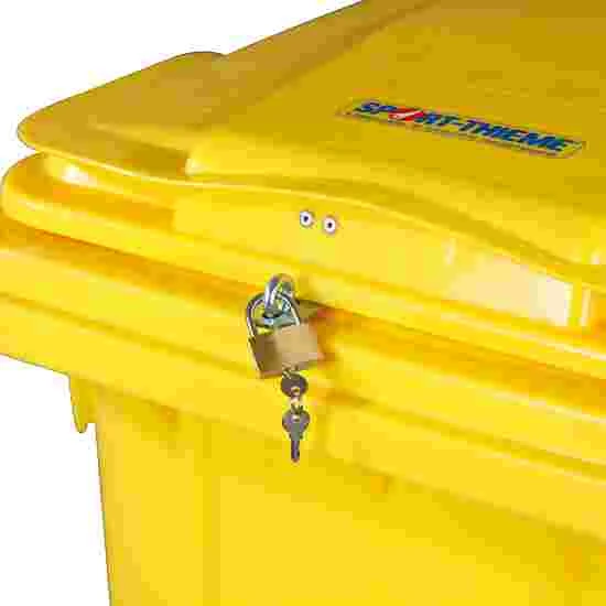 The games bin with contents give kids the ability to really let off steam during break times. Be it skipping or ball games, the numerous options let their imaginations run wild. All of the games can be stored in the Sport-Thieme games bin. The yellow plastic bin has a capacity of 240 litres. Thanks to the 2 strong wheels, the bin can be easily transported from one place to the next during break times or at birthday and garden parties. To ensure that nothing gets lost, simply lock the games bin with a padlock (included, supplied with two keys).