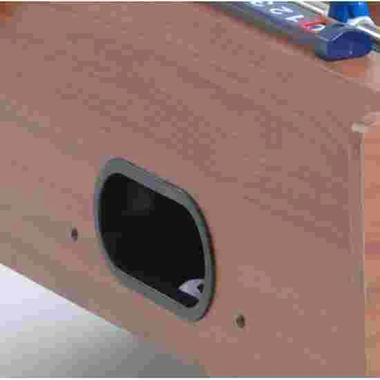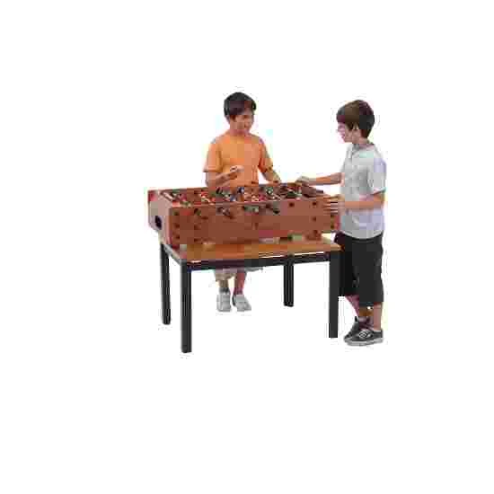 Set up the table football on a table in your living room, dining room or kid’s room and get playing. Particularly robust construction. The core is made from 15-mm-thick solid MDF panels. The table is fitted with 13-mm-thick telescopic bars, which will not protrude out of the other side of the table during play. This provides additional safety when children play with the table. Another advantage is the players which can be individually mounted to the bars. If a player gets damaged, it can be easily replaced. The MDF playing surface (78×48 cm) is coated with melanin, making it easy to clean and very hard-wearing. The table can be stored away after the game to save space thanks to its small size.
